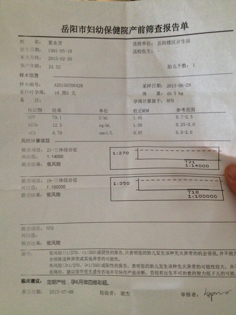 唐氏筛查的单子可以看男女吗?就是好奇 唐氏筛查的单子可以看男女吗?就是好奇 点击展开 卯倩儿 2015-07-31 15:45 为您推荐: 其他回答 不能吧,, 冰凉的手只想让你牵 2015-07-31 15:57 不懂看,我也不相信 英子爱艺 2015-07-31 15:55 这个看不出来吧 縸暝の痛 2015-07-31 15:55 。。。。。。 娃哈哈, 2015-07-31 15:55 看不出来吧。 2015感谢 2015-07-31 15:54 加载更多 相关问题 唐氏筛查单能看出男女不 好奇一下 给你四维彩超单子 可以帮我看男女吗 头一个好奇 有会看男女的吗,有单子,帮看下,好奇死了