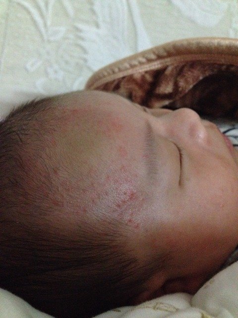 婴儿湿疹,属过敏引起,建议口服抗过敏药如扑尔敏,外用维生素B6软膏或氧化锌软膏 日常生活尽量避免外界刺激物和局部刺激,不抓,不用力揩擦,不用热水肥皂烫洗.