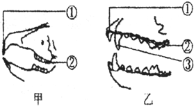 (1)哺乳动物的牙齿有门齿、臼齿和犬齿的分化,其中门齿切断食物,犬齿撕裂食物,臼齿磨碎食物.哺乳动物中食草性动物的牙齿只有门齿和糟安臼齿,没有犬齿;而哺乳动物中肉食性动物有发达的犬齿,适于撕裂食物,由于盲肠适于消化植物性纤维,而肉食性动物一般不食草,所以其腹腔内的盲肠不发达或退化.(2)图甲只有门齿和臼齿,们没有犬齿,因此是家兔裁趋键的牙齿,适于切断食物的牙齿是图中的1门齿.(3)图乙有门齿、犬齿、臼齿,犬齿发达,因此是狼的牙齿,判断的理由是:狼的3犬齿发达,适于撕裂食物,与它们的肉食性生活相适金绣应的.故答案为:(1) ①门齿;;; ②臼齿;; ③犬齿.(2)甲,门齿和臼齿,犬齿,食草.(3)乙,犬齿,撕裂,食肉