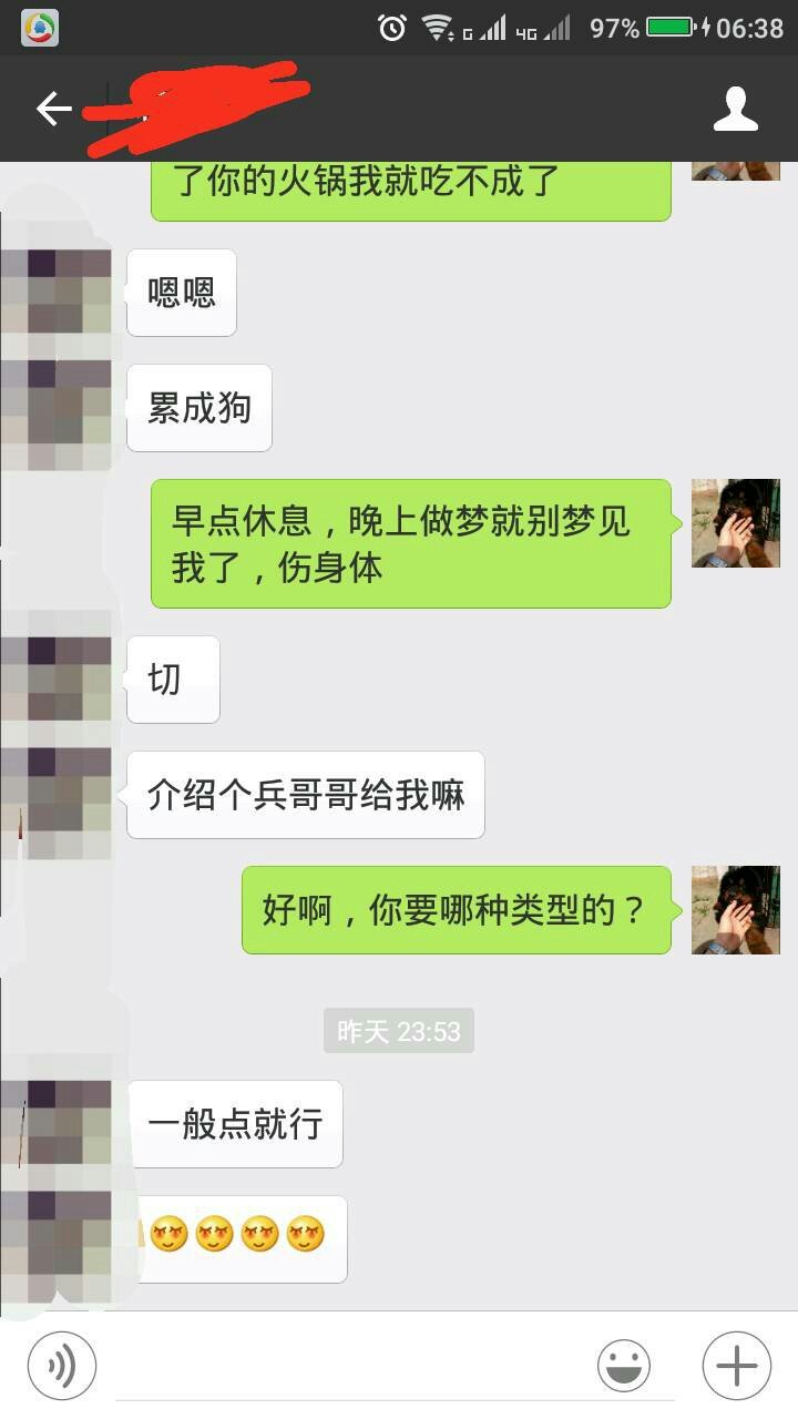 她可能很单纯,没感觉到你的关心,喜欢兵哥哥是正常的,男人味十足,她心里可能把你当闺蜜也说不定