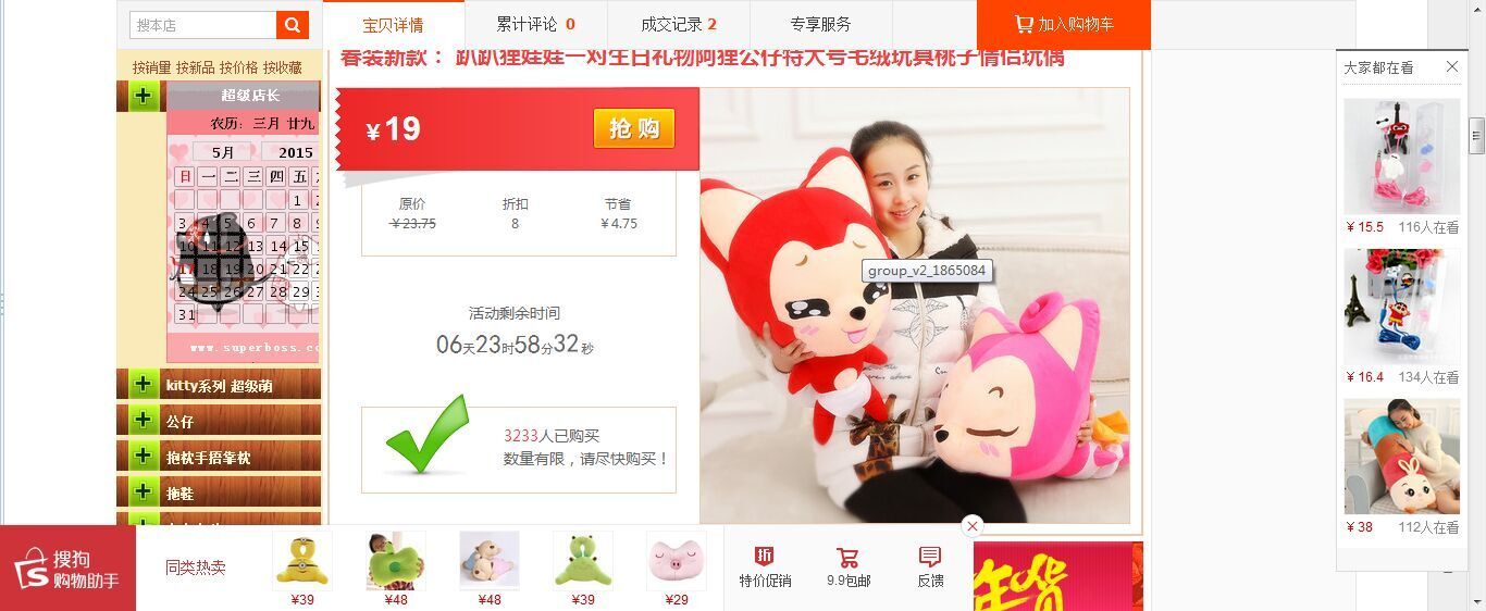 为什么有的人淘宝宝贝下面都有抢购,这是怎么弄上去的? 点击展开 匿名用户 2015-05-17 09:48 推荐回答 亲 这眠截个是模板,或者你购买淘宝的服务里面也会有。 你可以百度搜索 淘宝促销模板,你会找匪查到的,狗残菜然后把代码粘贴到相应的位置就可以了 望采纳 匿名用户 2015-05-28 10:36 宝宝知道提示您:回答为网友贡献,仅供参考。 相关问题 淘宝宝贝详情下面的东西怎么弄 淘宝宝贝,鼠标一点上去就变大了,怎么弄 有没有人帮忙复制淘宝宝贝 5元200个宝贝左右的