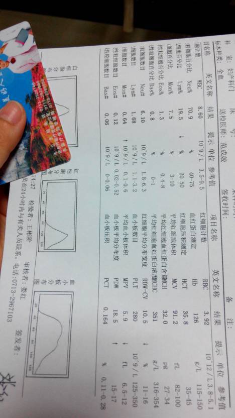 医生帮我看看我贫血吗? 医生帮我看看我贫血吗? 点击展开 洋贝 2015-04-01 15:02 为您推荐: 其他回答 你好,在网络中看不到你的具体情况,建议你说一下,我帮你分析。 2015-04-01 16:19 不贫血,自己可以看看,有参考范围的,只要在范围内就不贫 小刺猬, 2015-04-01 15:42 不贫血。。。 151*****640_lETO 2015-04-01 15:19 不知道。。 一见不钟情_Ndqe 2015-04-01 15:10 相关问题 今天检查医生说我有点贫血,怎么办 求解 我家娃娃80多天了,医生说有点贫血,这么办? 医生说我家宝宝有点像贫血性黄症,这么办,急