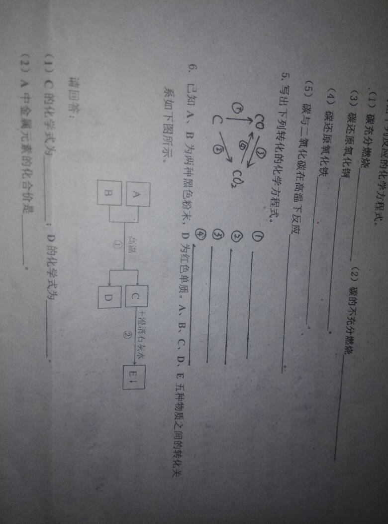 初中化学小儿科 5和6两题 求答案 点击展开 匿名用户 2014-11-26 21:45 为您推荐: 其他回答 一2CO+O2=2CO2 点燃 二C+O2=CO2 点燃 三2CO+O2==2CO2 点燃 四C+CO2=2CO 高温 CO2 Cu +2 匿名用户 2014-11-26 21:53 1234看不清 匿名用户 2014-11-26 21:47 相关问题 给物理大神送小儿科初中物理题了! 初中化学要怎么学,女孩子 奶粉中蛋白质的化学式 初中化学
