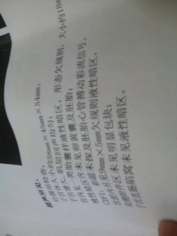 从末次姨妈算起、现在应该是快两个月、今天去医院彩超、宫内见一类胎囊样液性暗区,形态欠规则、大小约