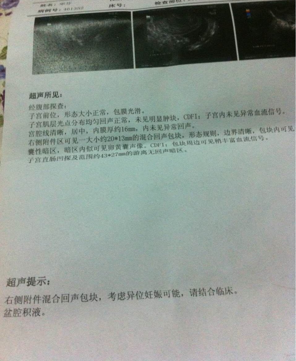 是不是宫外孕 或是其他病症 医生跟我讲述的不是很清楚 点击展开 匿名用户 2014-12-28 22:51 为您推荐: 其他回答 你好,你有没有停经史?有没有腹痛及阴道流血的情况?有没有查过血绒毛膜促性腺激素及孕酮,单纯根据你的彩超结果还不能确定是不是宫外孕,还需要根据临床表现,动态观察血HCG和孕酮的情况以综合判断,才能下诊断的。 韵动的音符 2014-12-29 08:34 相关问题 请问我这病症是什么引起的?是宫外孕吗?医院医生都没说清楚 今天做Bc说比前一周大了!也离子宫近了?是不是说明还没有着床啊?急!是不是不进去就是宫外孕?医生说 这是半个月前做的彩超,当时没试出来怀孕,现在试出来了,我这总情况是不是宫外孕,有没有医生可以帮忙解