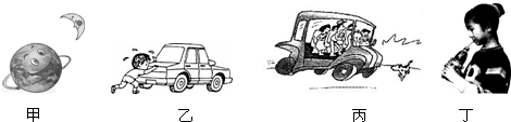 对图所蕴含的物理现象,正确的解释是( )A.甲图,月亮由于惯性绕地球作圆周运动B.乙图,小孩未推动