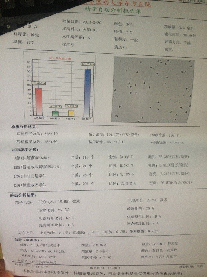 我去年也检查了,比你的还低,后来吃了好多中药和黄精赞育胶囊,提高到42%,可以怀孕的。标准就是50%,可以啦。有空叫你女友也去检查下