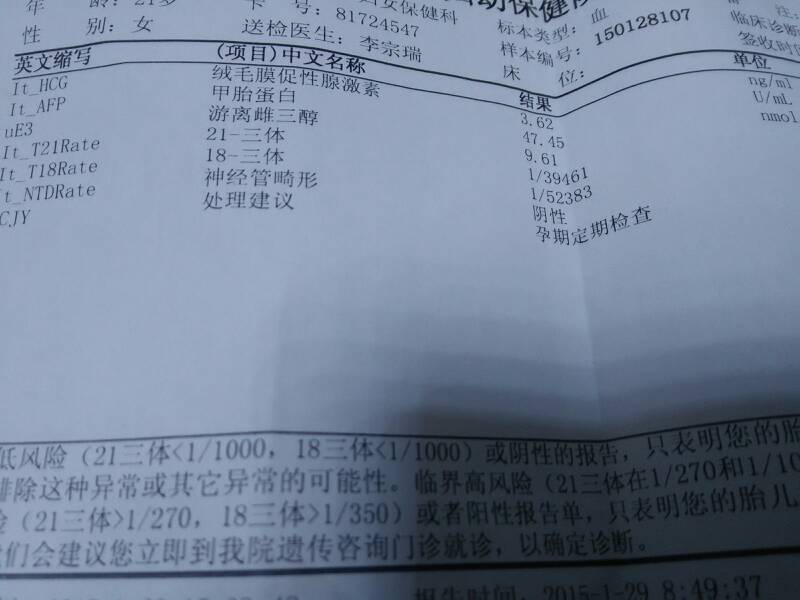 啦 ~啦~啦~ 唐筛过了,据说唐筛能看男女,大家帮忙看看 啦 ~啦~啦~ 唐筛过了,据说唐筛能看男女,大家帮忙看看 点击展开 131*****147 2015-01-30 19:54 为您推荐: 其他回答 你好,根据你提供的信息不能判断胎儿的性别,建议在怀孕4个月左右B超检查。 五彩缤纷20143 2015-01-30 21:06 这个看不出来 Judy皮皮 2015-01-30 20:44 祝宝妈好孕 幸福满满。。添添 2015-01-30 20:20 看不准的。 飞儿_j4Rm 2015-01-30 20:04 噢,我也是这个专家看的。唐氏筛查能看性别?我还是第一次听说,真的吗 为了遇见你、 2015-01-30 20:02 加载更多 相关问题 有人能看懂唐筛结果吗?唐筛能看出男女吗? 大家帮忙看看唐筛结果,AFP0 7,1/523 HCG2 05,UE3 0 94 唐筛怎么看男女 AFP的MOM值1 41 HCGB的MOM值0 43 UE3的MOM值是0 9