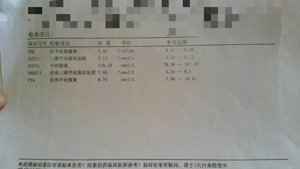 tsh高T3高T4正常ET3高FT4正常是甲亢还是甲减? tsh高T3高T4正常ET3高FT4正常是甲亢还是甲减? 点击展开 137*****117_C3V3 2016-05-12 21:07 为您推荐: 其他回答 不知道……… 138*****797_93fd 2016-05-12 21:31 祝身体健康 wywh 2016-05-12 21:27 嗯嗯,可以择期复查 cn#BfkGQuuufV 2016-05-12 21:16 ????? 13629852367雨 2016-05-12 21:14 你好,你的这个结果确实不合常理,都不是典型的甲亢或者甲减,结果不一定准确,建议择期再复查看看的。 cn#BfkGQuuufV 2016-05-12 21:14 加载更多 相关问题 之前甲减6 2,用药后五周就是孕82天复查甲功TSH降到0 08了,又偏低了 T3 T4一直正常,要甲亢了怎么办?可以停药吗?低于底限了对胎儿有影响吗? 怀孕前甲减,服优甲乐正常后怀孕 现在怀孕5个月,复查甲状腺功能,T3是3 12,T4是218 5,FT3,FT4正常,TSH0 01好像是甲亢了,怎么服药 婴儿游离t3偏高、游离t4偏底、tsh正常是正甲减或是甲亢?