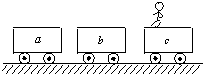 如图所示,三辆相同的平板小车a\b\c成一直线排列,静止在光滑水平地面上,c车上一个小孩跳到b车上,接