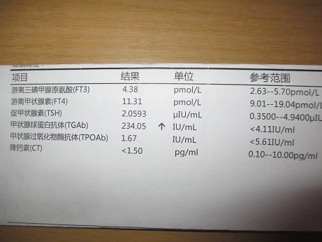 我甲状腺弥漫性病变伴肿大,一侧结节样病灶,其他指标正常,但tgab指标高达234,可以继续哺乳 一直未吃药治疗。是2013年做的检查,没有不适症状,当时医生就说平时饮食注意点就行,让我如果准备怀孕前再去一次医院。但我后来结婚生子,都没有去过医院,现在孩子8个月了,可以继续哺乳吗?附上具体的检查报告。谢谢! 点击展开 匿名用户 2014-12-14 12:35 为您推荐: 其他回答 你好,根据你的描述建议你在到医院检查一下甲功看看。是否正常。 匿名用户 2014-12-19 21:39 相关问题 我甲状腺弥漫性病变伴肿大,一侧结节样病灶,宝宝9个月了,是否可以继续哺乳? 我是11年空胚囊,12年停胎,HCG指数都没有破万,两次都是不足三个月清宫 术后查出子宫内膜4mm,输软管左侧堵右侧粘连,甲状腺弥漫性病变 请问如何才能怀孕? 甲状腺左叶弥漫性病变、实性占位、多发占位