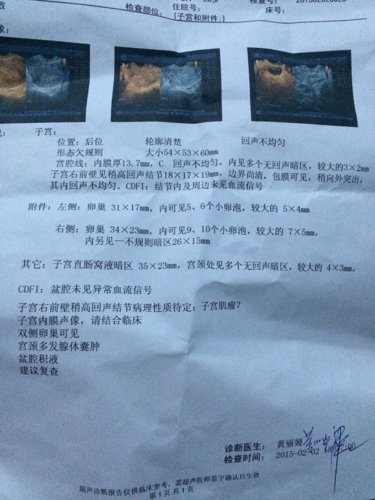 子宫内膜厚13.7mm回声不均匀内见多个无回声暗区较大的3x2mm是什么意思求解,例假没来,医生说 子宫内膜厚13.7mm回声不均匀内见多个无回声暗区较大的3x2mm是什么意思求解,例假没来,医生说不要紧,开了催经药吃 点击展开 匿名用户 2015-02-02 18:32 推荐回答 有囊肿,蛇用崔经药吃完了再肆抓去做,看看是不是没有了,如果还有俗务概,就要做进一步检查。 匿名用户 2015-02-04 00:33 宝宝知道提示您:回答为网友贡献,仅供参考。 为您推荐: 其他回答 月经紊乱,听医生的 匿名用户 2015-02-02 18:36 相关问题 请问这是什么意思子宫内膜厚约1 2cm,回声欠均匀,内见0 4*0 3cm稍强回声,(例假结束后一星期检) 医生你好!我子宫内膜后度是2,3而且我例假不正常有关系? 我是2月6号最后例假,今天为止打了5天孕酮,下午流了暗红色血去医院,检查B超没有胎芽和胎心,医生建