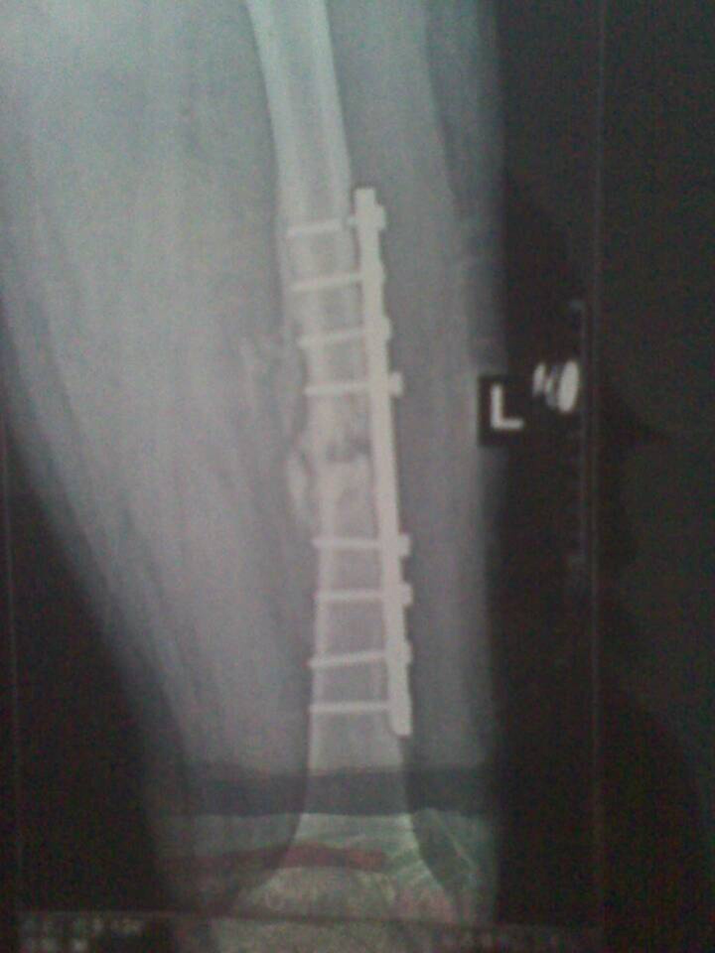 股骨骨折,八个月钢钉断两根,骨折处外突,需手术矫正吗 点击展开 匿名用户 2013-11-05 15:32 为您推荐: 其他回答 病情分析: 你的这个是在愈合的了。 指导意见: 这个是不需要手术矫正的,建议你加强功能锻炼,骨折愈合是会自行矫正的。 匿名用户 2013-11-05 15:39 相关问题 你好,我儿子股骨粉碎性骨折,当然在医院做了手术,现在有五个月了,现在检查里面钢钉断了,好像连接点也 脚内 外踝撕脱骨折打了钢钉钢丝 两个月后感觉钢丝有… 十月三十号来月经十一月四号做骨折取钢钉手术十二月来月经一月没来怀孕小孩能