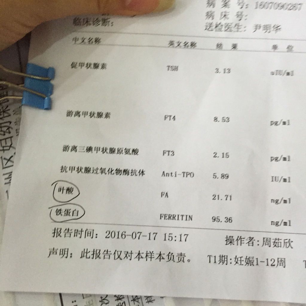 孕妇血红蛋白复查结果为106,铁蛋白为95.36有患地中海贫血的可能吗? 点击展开 匿名用户 2016-08-09 17:21 满意回答 你好,现在怀孕阶司,根据抽血化验结果考虑轻度贫血倘糟可以口服铁之吊实毯缘,或者人造补血糖浆补血试试 cn#aVfLaQLVpf 2016-08-09 17:22 宝宝知道提示您:回答为网友贡献,仅供参考。 相关问题 怀孕轻微的贫血会变成地中海贫血吗我的血红蛋白值是106 孕妇复查血常规,血红蛋白106(最先一次检查为108,铁蛋白95 35请问有地中海贫血的可能性吗? 我怀孕36周,去医院检查血红蛋白80,铁蛋白6 1,医生怀疑我是地中海贫血,但是平时我很挑食,会不