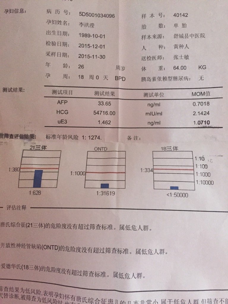 大家帮我看看,我的唐筛单子,能看出男女吗?第一胎男女都爱只是好奇的很!懂得来 大家帮我看看,我的唐筛单子,能看出男女吗?第一胎男女都爱只是好奇的很!懂得来 点击展开 Viplhy74839 2015-12-10 14:30 为您推荐: 其他回答 应该看不到男女 二孩宝妈 2015-12-14 22:49 看不出!!! 祝宝宝健康快乐的成长!! 2015-12-10 16:08 没什么的了, 小晟晟◕‿◕ 2015-12-10 14:41 不会看,, 慧,嘉, 2015-12-10 14:36 哪不大准。 腾逸乖 2015-12-10 14:36 加载更多 相关问题 你好,我今年28岁,孕十九周做的唐筛,结果是18三体高风险,麻烦你帮我看看单子,我的结果是1:24 第一次怀孕,看不懂唐筛单子,我是18周做的唐筛,其中的甲胎蛋白与游离β-hcg是高是低?求懂得人指点一二! 满12周做的NT加早期唐筛,帮我看看检查单子,医生一会说没问题,一会又说建议我一个月后做羊水穿刺 现在满4个月了 可以给点建议吗?