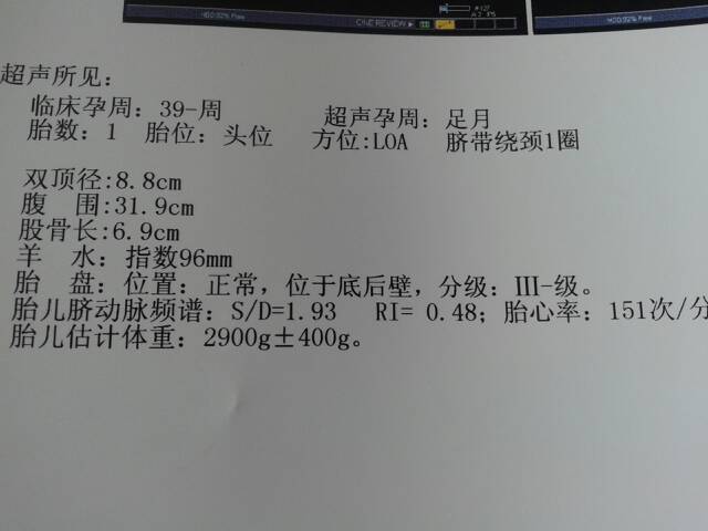 你好,目前的情况考虑胎儿发育正常,羊水正常,胎盘功能正常,建议在当地医生的指导下适时结束分娩。
