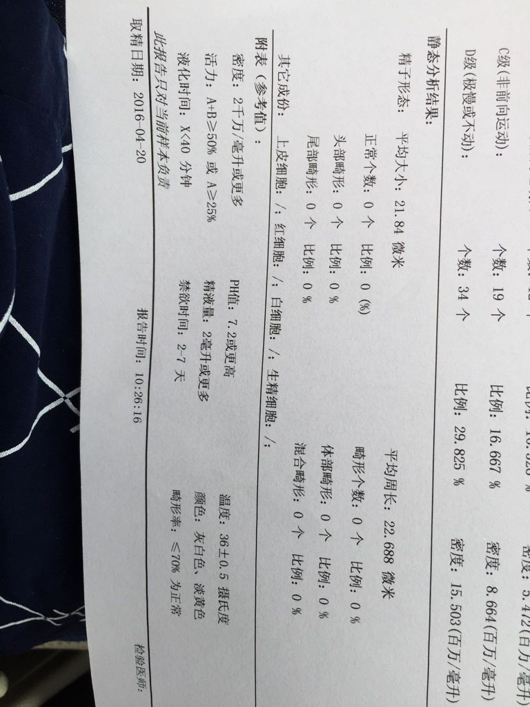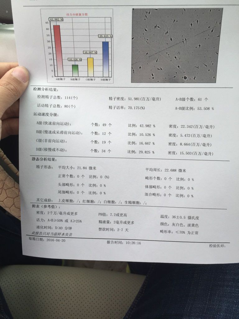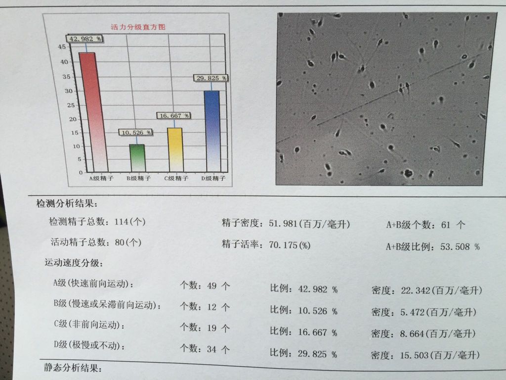 精子分析,孕前检查 帮我看看我有问题吗?! 点击展开 匿名用户 2016-04-20 14:16 满意回答 从检查的结果来看是属于正常的,这个精子质量没之套有问题葵索,可以怀孕。耻它亲 詹又松_yvIT 2016-04-20 14:40 宝宝知道提示您:回答为网友贡献,仅供参考。 相关问题 做了孕前精子检测,求医生帮我看看 孕前准备y精子能活多久体内 精子检查在做孕前检查的时候也可以做的吗?这个检查一般都是要多少钱?