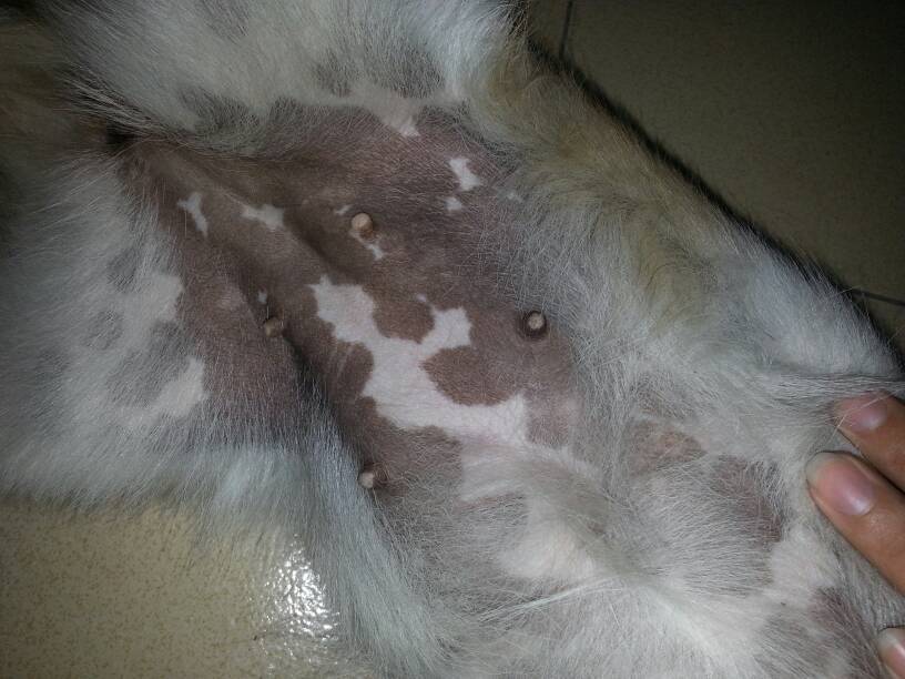 哪位大神给我看看我们家狗狗是不是怀孕了,今天第33天,肚子看不出来,乳房有点涨,这几天没什么精神