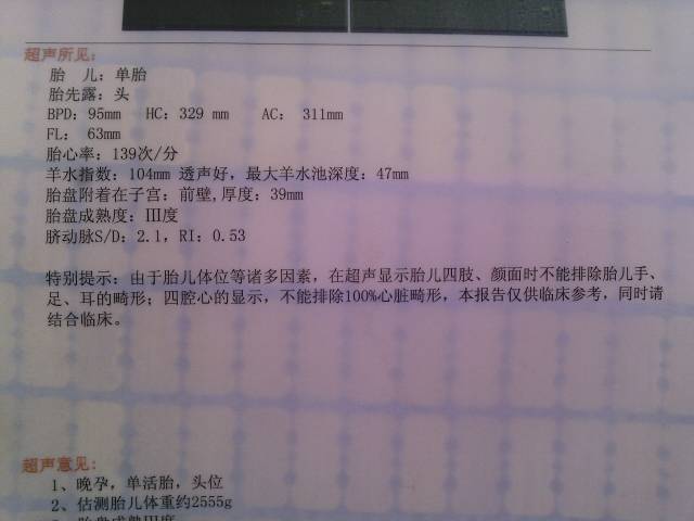 从B超结果看挺好的,宝宝也不是很大,胎位也很正,可以顺产试一下。
