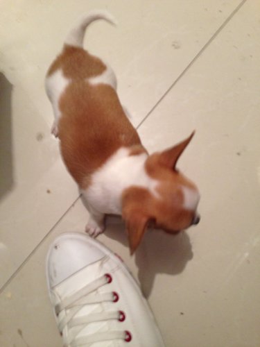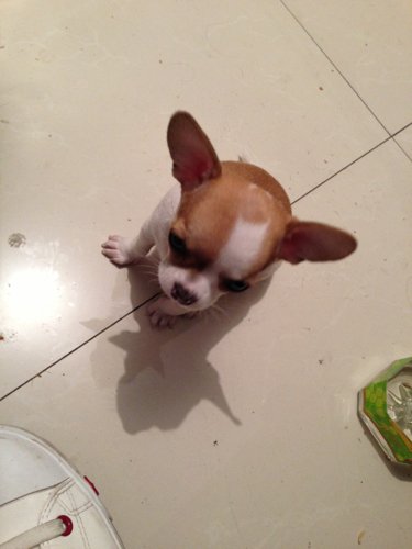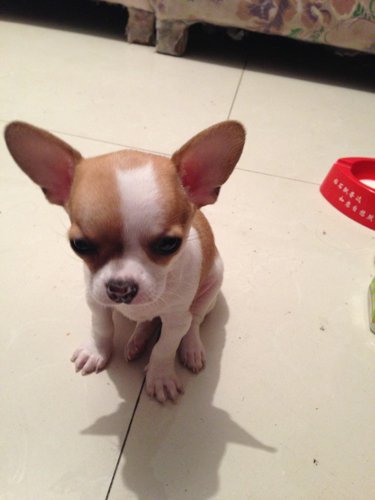 去求吧 都成年了 还说没断奶 这只吉娃娃根本不纯 难看死了 嘴巴长 脑袋也不圆 脸上花纹也不对称 总之难看