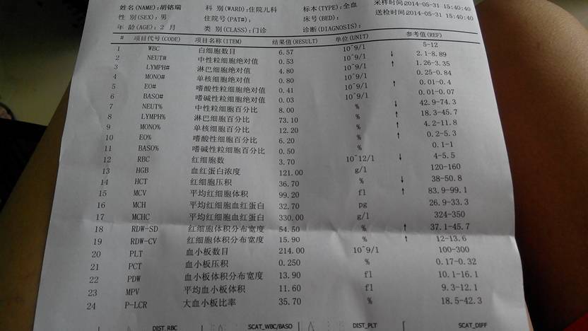 无大碍,最多轻微病毒感染,另有一点贫血倾向。 孩子如果没有其它不适症状,可不用理会。