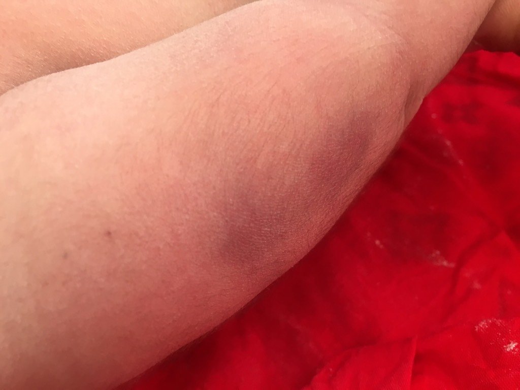 我家宝宝刚出生5天就发现胳膊上有硬块,现在第十一天两个胳膊上有4个硬块了,这可怎么办啊,我是辽宁营口得,去本地医院医院根本看不了,让我们去沈阳看病,可是孩子太小啊!图片是右胳膊得两和硬块,左胳膊今天才发现也有,但右胳膊得是小红块然后里边是硬块,希望专家帮忙解答一下,然后我们好准备怎么治疗!