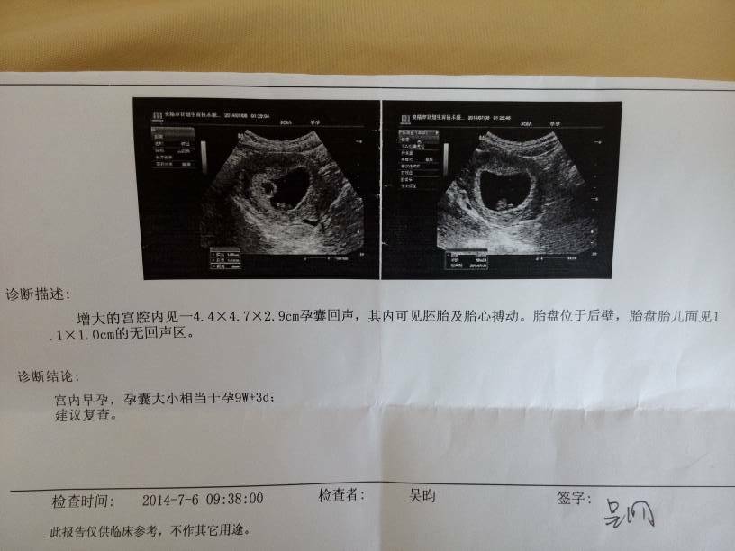 最后次月经5月6号,6月9号流了点鲜红血,6月9号B超宫内之后吃了固肾安胎丸,没怎么流了,卧床休息