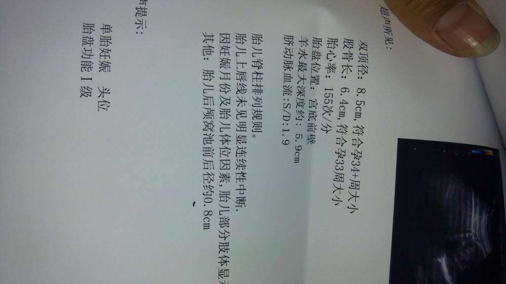 有宝妈做的B超单子显示宝宝这个吗?其他:颅骨?有问题吗 有宝妈做的B超单子显示宝宝这个吗?其他:颅骨?有问题吗 点击展开 米兰的春天_qc21 2015-03-09 14:07 为您推荐: 其他回答 没事啊!挺好的 南娜纯手工精油皂商铺 2015-03-09 17:04 有,我家宝0.9,但是医生说那个没事,大部分孩子都那样,后期自己就闭合了,但是有的医生太小心,乱写吓唬孕妇,放心吧宝妈,我家宝宝现在可健康呢 漫木心 2015-03-09 14:31 没有过,,,, 我的妞妞儿 2015-03-09 14:15 祝宝妈好孕 巧蕊宝贝 2015-03-09 14:14 没有过,祝福宝妈好孕 奋斗小青年_8cgO 2015-03-09 14:10 相关问题 拍了个b超单子显示子宫畸形!对我的宝宝出生有影响吗 怀孕7个半月的B超单子,请帮忙看一下小孩和胎盘有没有问题!谢啦