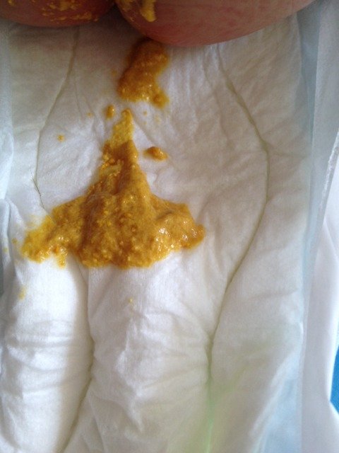 77天的娃,母乳加一顿奶粉,大概100多毫升,拉这样的大便正常么?今天拉了6、7次了,比平时多,正
