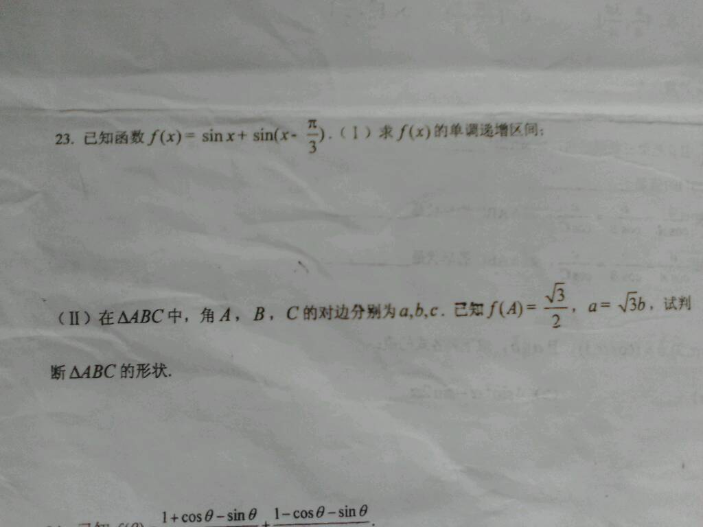 我是笨小孩,这两题怎么做啊!!!求大神解! 点击展开 匿名用户 2014-10-05 14:13 推荐回答 第一题用诱导公叹坐式化简然后就可以得出一个三角函数的普通式之后对其求导另导数大于和小于0就能得出区间 第二题用正今电余弦的公式把乡训筛 好久了我也忘了。。。。 匿名用户 2014-10-05 14:24 宝宝知道提示您:回答为网友贡献,仅供参考。 为您推荐: 其他回答 我也是 匿名用户 2014-10-05 14:13 相关问题 想给四个月大的婴儿做衣服 可不知尺寸,求大神解? 谁有《老天会爱笨小孩》书的内容??谢谢了,大神帮忙啊 姐妹们,前两天我好像要感冒就半个头疼,右边,四天了,现在没感冒怎么还z一下一下的疼呢?求大神解!