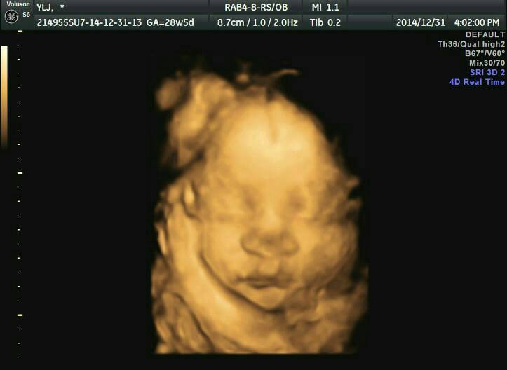 我的胎宝宝是塌鼻子吗?29周做了四维B超但医生只照了正面的脸部,发现宝宝鼻子又宽又塌感觉好丑的,可