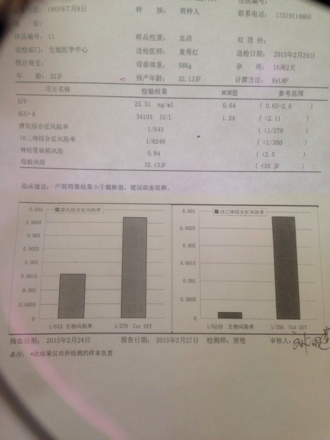 请问谁会看唐筛单子,帮我看看正常吗? 请问谁会看唐筛单子,帮我看看正常吗? 点击展开 日服务 2015-03-03 11:51 为您推荐: 其他回答 😄。。。。。 為伱ゞ鍾情 2015-03-04 12:08 我会,一切正常。只要宝妈保持好的心情,宝宝一定会健康的 為伱ゞ鍾情 2015-03-03 13:00 我也是,就怕出错 顺顺的宝妈& 2015-03-03 12:26 正常。。。 王博宣妈妈 2015-03-03 12:15 那去给医生看看 都是天使惹的祸 2015-03-03 12:14 加载更多 相关问题 医生麻烦帮我看看唐筛单子 现在17周了,去医院做了唐筛,一系列机器检查之后大夫看着各项单子说正常,也没说吃钙片、维生素、补铁啊什么的,总感觉什么也不吃好像不对头,准妈妈们,你们吃什么呢 有没有唐筛结果出来的啊 各数值都是多少啊 我的2项高的 没拿到单子 不知道会不会有什么不好 好担心 甲胎蛋白 人绒毛膜促性腺激素都是多少啊