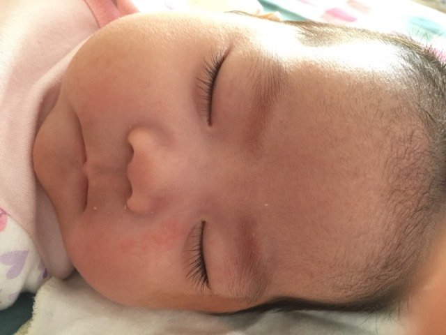 宝宝脸上有疹子摸起来有点硬,热时候就颜色深些,凉快下来颜色浅些 有扩散迹象 整个脸蛋都有点干皮肤粗