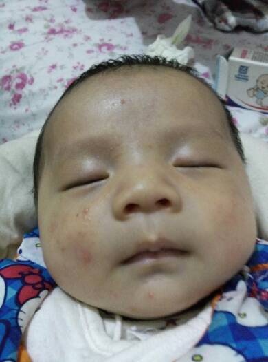 谁可以告诉我我家宝宝脸上长得是湿疹还是新生儿痤疮啊!要怎么办啊!!