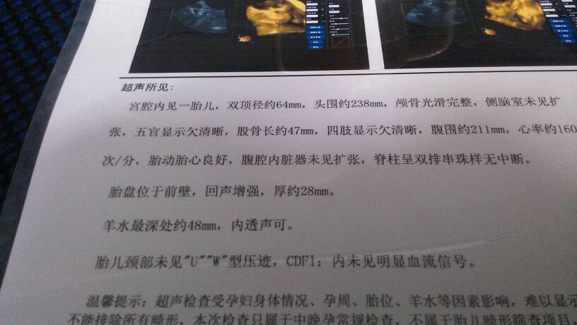 我昨天去做了四维彩超感觉那个医给的报告不仔细!大家帮忙看看这是标准的四维超吗?