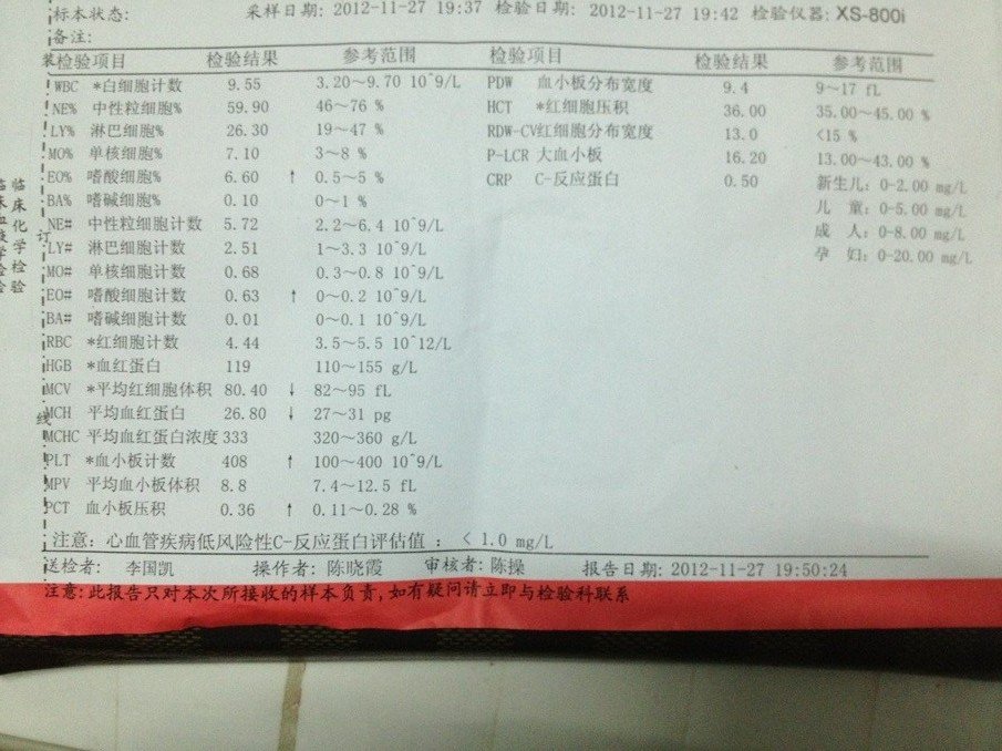 小孩子脖子这个地方出现针头大小的红疹,不知道是不是猩红热 患者信息:男 2岁 福建 福州 病情描述(发病时间、主要症状等):2012.11.26晚上发现小孩子脖子这个地方出现针头大小的红疹,半夜后就身子也有了,用药膏涂后好像有好状,但是第二天发现嘴唇两边也出现针头大小的红疹伴有痒的症状,然后到医院检查了医生诊断是皮诊,血常规:嗜酸细胞是:6.6 参考值是:0.5-5 嗜酸细胞计数:0.63 参考值:0-0.2 10-.9L 平均红细胞体积:80.40 参考值:82-95fL 平均血数蛋白:26.50 参考值:27-31pg 血小板计数:408参考值:100-400 10-9/L 血小板压积:0.36 参考值:0.11-0.28% 这样会不会是猩红热的症状呀?想得到怎样的帮助:想知道是过敏了还是猩红热的症状,还是其它的症状?曾经治疗情况及是否有过敏、遗传病史:无过敏史 点击展开 匿名用户 2012-11-29 16:15 满意回答 没有发烧就不是猩红热,发烧是猩红热最明显的症状了。 匿名用户 2012-11-30 14:13 宝宝知道提示您:回答为网友贡献,仅供参考。 相关问题 2岁多女孩脸上及脖子上长针孔大小红疹? 宝宝的脖子上起红疹是什麽回事 四十五天宝宝脖子后面长了很多红疹