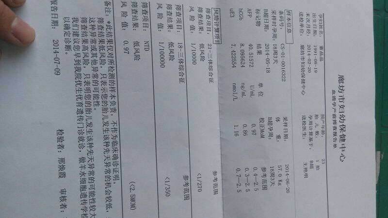 唐筛过了,能看懂的宝妈妈帮我看看是闺女还是小子 唐筛过了,能看懂的宝妈妈帮我看看是闺女还是小子 点击展开 芃芃麻麻~~ 2014-07-10 19:18 为您推荐: 其他回答 根据检查的结果判断不出胎儿的性别。一般在怀孕十六周后,可以通过B超检查,观察胎儿的生殖器进行判断的,但是医院进行鉴定属于不合法的。 shenglongxiao 2014-07-10 19:20 相关问题 谁能看懂唐筛结果吗?能帮我看看我的结果怎么样? 有经验的宝妈帮我看看是闺女还是小子