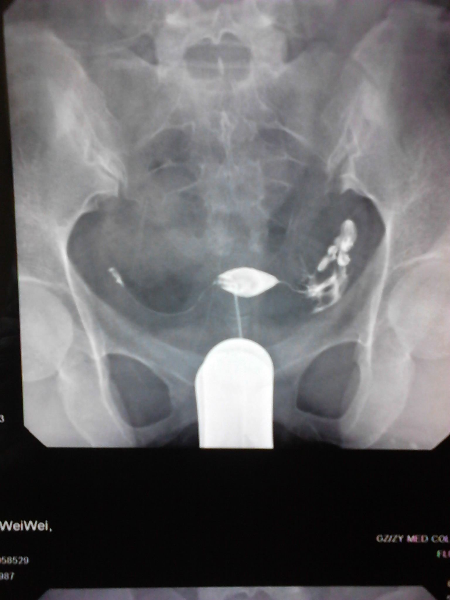 患者信息:女 25岁 贵州 遵义 病情描述(发病时间、主要症状等):子宫腔大小.形态无明显异常.子宫粘膜面光滑整齐.宫腔内见气囊及气泡所致充盈缺损。双侧输卵管全程显影.双壶腹部粘膜皱襞增粗.双侧伞端呈锥状.其内造影剂呈喷射状进入腹腔.进入腹腔之造影剂弥散欠佳曾经治疗情况及是否有过敏、 遗传病 史:现在正在吃中药
