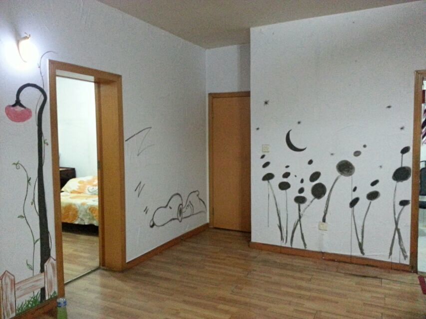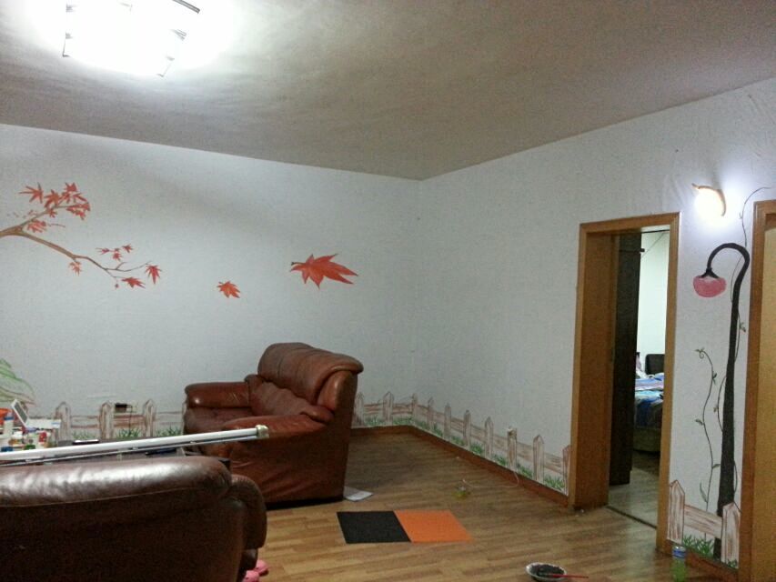 感觉有些还是画的不错的,自己看不下去的就用其它颜色把画盖住。反正全是白色的墙面也不好看 再把画弄精细一些可能要好看些。