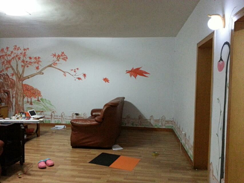 因为你选择的是一些简笔画 风格轻快 自然有点童趣 现代感 立体感的一些线夕崇条 可能能够帮你提供品位 黑白搭曲线可能好一点 但我个人 还是比较喜欢轻快风 田园风的 建议 1你可以将墙壁换下颜色 2同时将壁画 减少一部分 扩大空间感 色彩更换不要太多 3 比如 枫树 你就可以大面积的 渲染枫树枫叶 把它的主苦竖导地位扩大 而不是只把它当做一部分 减少凌乱感 4一间屋子要有它的主打风格 PS:注意哦 颜色最好根据房屋的用途加以考虑 不然会潜移默化的影司套贵响人的身心健康