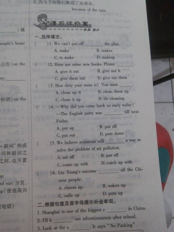 让那些生病的孩子高兴起来 - 八上英语 点击展开 匿名用户 2015-03-30 00:01 满意回答 1,D 匿名用户 2015-03-30 00:03 宝宝知道提示您:回答为网友贡献,仅供参考。 为您推荐: 其他回答 百度,中文翻译英文!谢谢,好使哦,英文也可翻译中文! 於砝挽嚠 2015-03-30 00:11 D C C B C A 1.cities 2.hand 3.sign 匿名用户 2015-03-30 00:05 带他去玩 匿名用户 2015-03-30 00:02 相关问题 那里的小孩经常生病 英语 求一些认识你很高兴夸女孩的英语? 这个小男孩在儿童节为什么不高兴英语