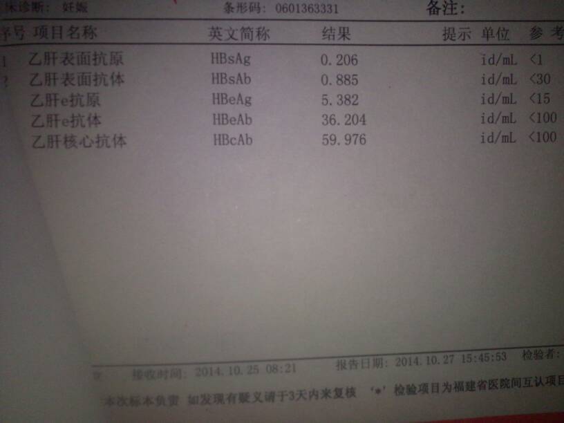 有没有医生帮忙看下这结果,有没有得乙肝 有没有医生帮忙看下这结果,有没有得乙肝 点击展开 chl12376 2014-11-30 13:48 为您推荐: 其他回答 你好,你没有得乙肝,乙肝五项指标全是阴性的。可以到医院打乙肝疫苗的。 zhyl158 2014-11-30 18:23 没有得。, 闭上右瞳孔 2014-11-30 14:14 医生不是都告诉你吗 183*****621_g3RR 2014-11-30 14:14 没有得乙肝 放心吧 淡雅芭蕉雨 2014-11-30 14:05 ?????? 188*****350_mlfC 2014-11-30 14:04 加载更多 相关问题 我有乙肝,求请帮忙看下这个结果会传染给孩子吗? 今天拿唐筛结果一切OK,就有一点说我以前有乙肝但是现在好了,我有点听不懂,医生说没有关系不影响