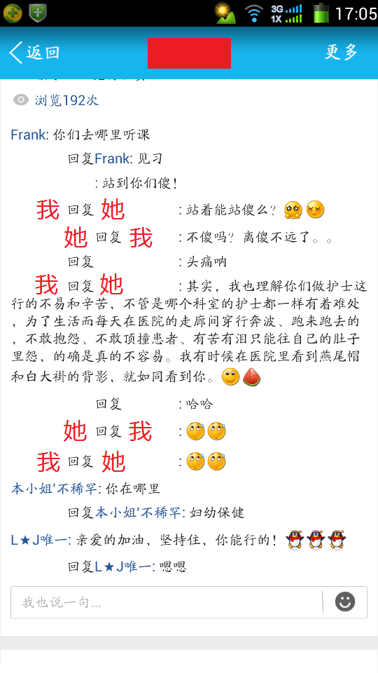 谁能帮我解析一下以下这张图片里的内容其中的意思?图片中这条说说是别的女孩子发的,但是这个我回复她的