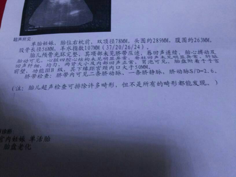 病情分析: B超将胎盘成熟度分为4级:0级为未成熟,多见中孕期;I级为开始趋向成熟,多见于孕29-36周;II级为成熟期,多见孕36周以后;III级为胎盘已成熟并趋向老化,多见于孕38周以后。 指导意见: 胎盘成熟度3度说明胎盘已经成熟并趋向老化,符合怀孕晚期的表现。胎盘老化会影响胎儿的供血供氧,建...