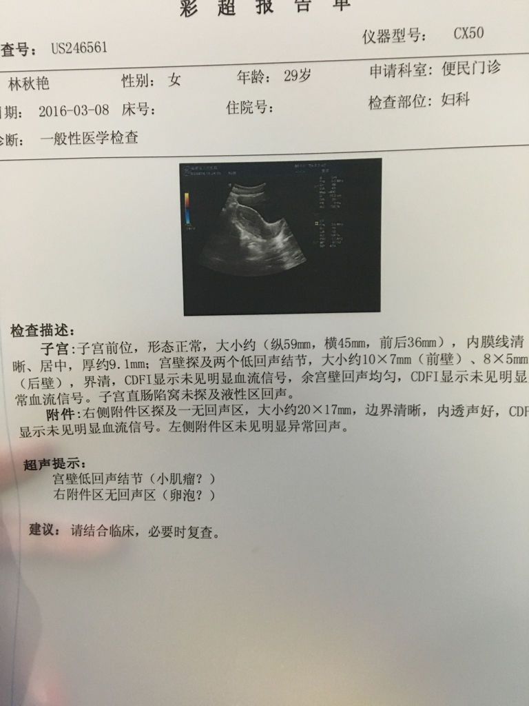 卵泡监测,谁知道的帮我看看我什么时候排卵,还有卵泡质量怎么样?那个小肌瘤有没有事? 点击展开 匿名用户 2016-03-08 16:55 满意回答 你好,卵泡发育质究破量还挺好的,马上就要排卵,小锅认潜肌瘤可以定期键纪检查一下,问题不大 白衣天使by521 2016-03-08 17:01 宝宝知道提示您:回答为网友贡献,仅供参考。 相关问题 我以前做彩超看到过发育成熟的卵泡,用试纸验过排卵正常,可这个月彩超监测卵泡只看到很小的,可以说没有 我月经不正常,这个月就推迟了七八天,月经后十四天开始做B 超监测排卵,感觉卵泡长的慢,阴历初三来的… 5月15号来的月经20号干净,5月26号做的测卵泡,请问什么时候排卵 请大家帮我看看
