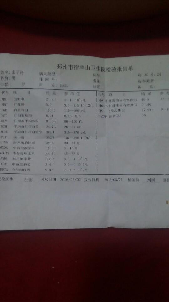 眼角膜引起的发烧到40度 抽了血有炎症 说是要掉几天水 烧退了炎症是不是就没了? 眼角膜引起的发烧到40度 抽了血 有炎症 说是要掉几天水 烧退了炎症是不是就没了? 点击展开 龙梅💗 2016-06-02 22:09 为您推荐: 其他回答 。。。。。 沛沛宝贝 2016-06-03 00:01 是的吧!! 妈妈辛福 2016-06-02 22:35 听医生建议 卷卷┳━┳ノ(°_°ノ) 2016-06-02 22:17 你说的种情况及时控制炎症是关键的,一般是可以治愈的,多饮水,不要食用辛辣刺激性食物,避免用眼过度。 cn#BufQkBkBaL 2016-06-02 22:12 去医院…… 乾宝贝 2016-06-02 22:11 加载更多 相关问题 六个月的宝宝感冒,血常规是有炎症,吊了4天水,炎症还是没消,怎么办 5个月的宝宝肠道有炎症 挂了3天水 炎症好了 但是还是拉肚子 大便蛮稀的 每次的量不多 颜色为黄绿色 宝宝急性肠胃炎,挂了5天水,炎症应该没了,但是天天拉稀,医生说要继续挂水防止点解制混乱,同时只能吃