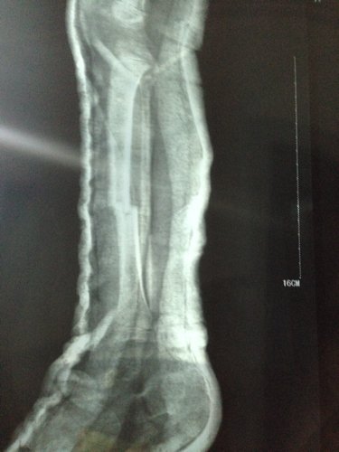 男孩三周岁5-9 被电动车撞,右小腿胫骨骨折,正位对线良好,侧位错位三分之一现差不多六周,前两 男孩三周岁 5-9 被电动车撞,右小腿胫骨骨折,正位对线良好,侧位错位三分之一。现差不多六周,前两天腿甩痛了就近急诊拍片,医生说骨头在长的,一周后把石膏拆掉吧,否则肌肉萎缩影响走路的,请各位医生指点一下,错位情况下,石膏拆了会影响恢复吗?因为两段骨头没合上阿,我上传一张之前的片子,请大家帮忙看一下。 点击展开 匿名用户 2014-06-21 15:58 为您推荐: 其他回答 一般石膏固定6-8周,小孩长得快,可以少固定一周,现在可以去掉石膏,不要让小孩下地走。可以在床上锻炼肌肉。 吧之旅狂 2014-06-22 14:11 相关问题 8岁小男孩右小腿胫骨中下部斜线骨折错位… 关于小腿骨折后大骨固定,小骨错位怎么处理的问题 小腿胫骨骨折打石膏后复查有错位,宝宝才两岁半怕以后有影响