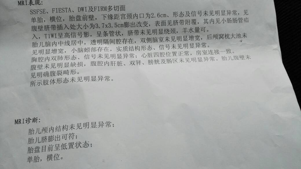 您好,前置胎盘容易导致怀孕后大出血的情况,怀孕后期尽量减少活动,延长怀孕时间比较合适的,防止胎盘早剥大出血的情况是比较重要的。胎儿脐膨出是有危险的。