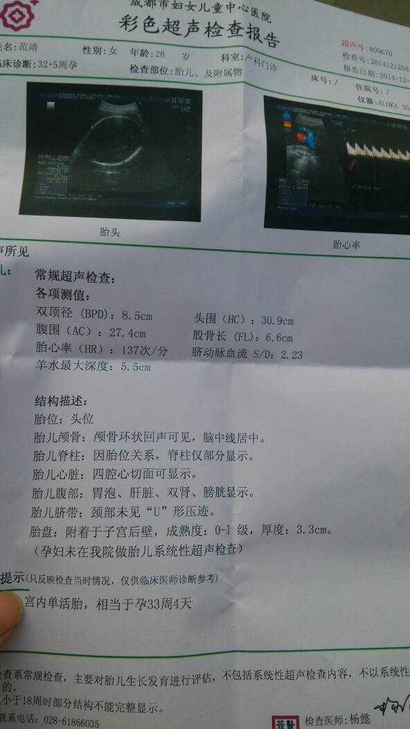 麻烦医生给我看看正常吗,,,今天32.5打的b超 麻烦医生给我看看正常吗,,,今天32.5打的b超 点击展开 半世浮沉,伤华年 2014-12-12 11:15 为您推荐: 其他回答 和11233 婉滢妈妈 2014-12-12 14:14 你好,就您的这张单子来看胎儿各个方面都发育的很好您不用担心呢 青丝弯弯月 2014-12-12 11:59 祝宝妈好孕 善待自己_V0Ew 2014-12-12 11:55 偏大了。。。 我的小乖乖友友 2014-12-12 11:23 骗大一周啊 葯苮ル ℡ 2014-12-12 11:18 加载更多 相关问题 这是我前几天的B超结果麻烦医生帮我看看是否正常! 今天四十八天了,恶露一直没干净,血状态,问了医生说吃母乳正常,真的正常吗?要不要做个b超看看呢?