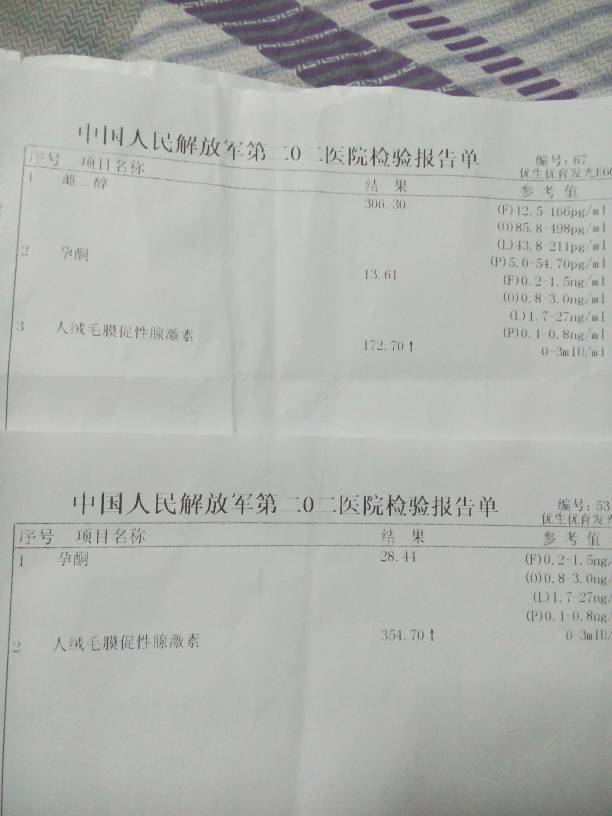 早孕大概30天左右 11月23日验血显示孕酮13.61 h 172 医生说值低 开了针剂黄体酮每